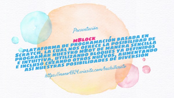mBlock plataforma de programación basada en Scratch, la cual nos ofrece la posibilidad de programar nuestro mBot de manera sencilla e intuitiva, utilizando bloques ya definidos e incluso creando otros nuevos, aumentando así nuestras posibilidades de diversión