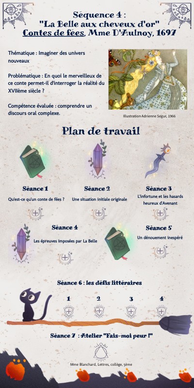 Thématique : Imaginer des univers nouveauxProblématique : En quoi le merveilleux de ce conte permet-il d'interroger la réalité du XVIIème siècle ? Compétence évaluée : comprendre un discours oral complexe.