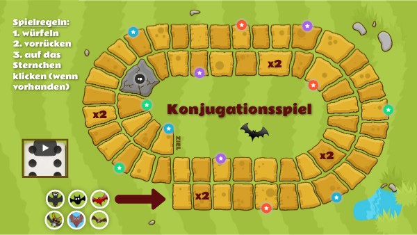 Spielregeln:1. würfeln 2. vorrücken 3. auf das Sternchen klicken (wenn vorhanden)