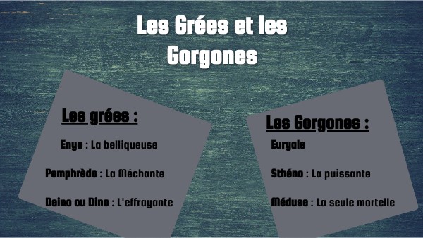 Enyo : La belliqueuse Pemphrèdo : La Méchante Deino ou Dino : L'effrayante
