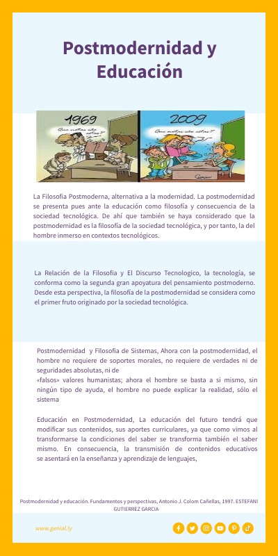 Postmodernidad y educación. Fundamentos y perspectivas, Antonio J. Colom Cañellas, 1997. ESTEFANI GUTIERREZ GARCIA