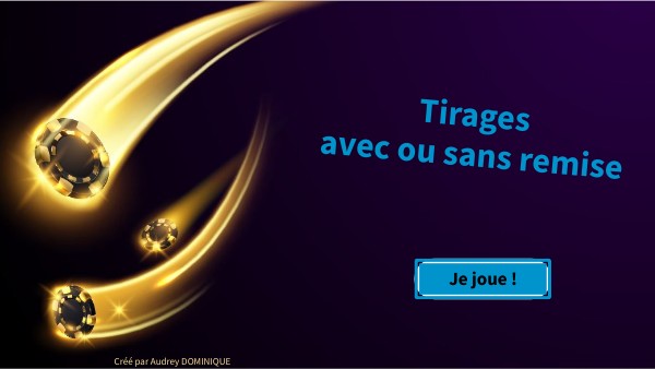 Bien joué! On peut passer à plus difficile ! Tirage avec remise...