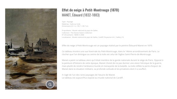 Effet de neige à Petit-Montrouge est un paysage réalisé par le peintre Édouard Manet en 1870. Ce tableau montre une vue hivernale du Petit-Montrouge, dans le 14ème arrondissement de Paris. Le clocher que l'on distingue au centre de la toile est celui de l'église Saint-Pierre-de-Montrouge. Manet a peint ce tableau alors qu'il était membre de la garde nationale durant le siège de Paris. Opposé à la peinture d'histoire de cette époque, Manet choisit de ne pas donner une vision héroïque de la guerre, mais plutôt de rendre l'ambiance lourde et menaçante de la bataille. La toile reflète la perte d'espoir de Manet dans la situation militaire, sa profonde solitude et les privations dont il a souffert. Il s'agit de l'un des rares paysages de l'œuvre de Manet. Le tableau est aujourd'hui exposé au musée national de Cardiff.
