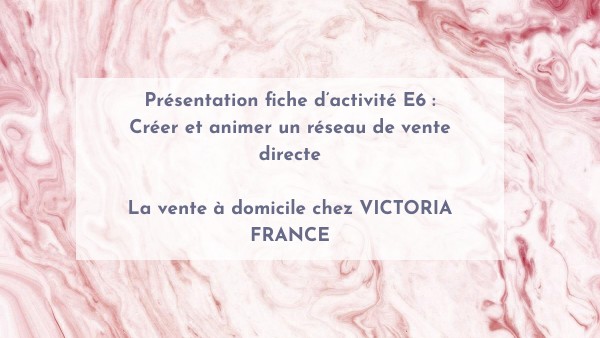 Présentation fiche d’activité E6 : Créer et animer un réseau de vente directe La vente à domicile chez VICTORIA FRANCE