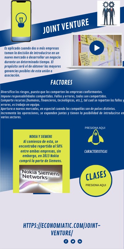Es aplicada cuando dos o más empresas toman la decisión de introducirse en un nuevo mercado o desarrollar un negocio durante un determinado tiempo. El propósito será el de obtener las mayores ganancias posibles de esta unión o asociación.