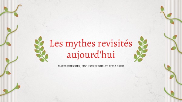 Dans le language courant : -> mythomanie, mythique, mythifier ... Le mythe toujours présent de nos jours : -> Il ne dit pas le vrai mais il a un pouvoir de révélation -> Vaste : amérindien, aztèque, aborigène d'Australie, africain, égyptien, germanique, chinois, japonais, islandais ...
