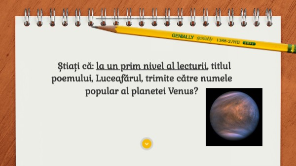 Știați că: la un prim nivel al lecturii, titlul poemului, Luceafărul, trimite către numele popular al planetei Venus?