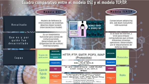 Cuadro comparativo entre el modelo OSI y el modelo TCP/IP.