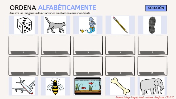 Arrastra las imágenes a los cuadrados en el orden correspondiente.
