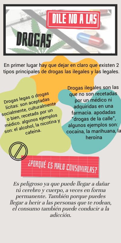 Drogas ilegales son las que no son recetadas por un médico ni adquiridas en una farmacia. apodadas "drogas de la calle", algunos ejemplos son: cocaína, la marihuana, la heroína