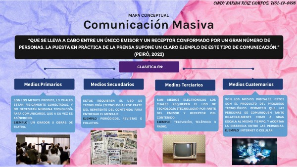 Son los medios digitales, estos son el producto del progreso tecnológico. Permiten que las personas se comuniquen tanto bilateralmente como a gran escala al mismo tiempo, y acortan la distancia entre las personas. Ejemplo: internet o celular.