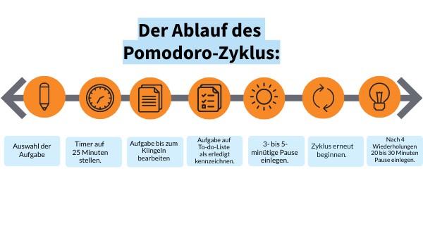 Der Ablauf des Pomodoro-Zyklus: