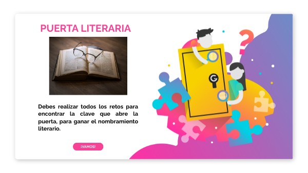 Debes realizar todos los retos para encontrar la clave que abre la puerta, para ganar el nombramiento literario.