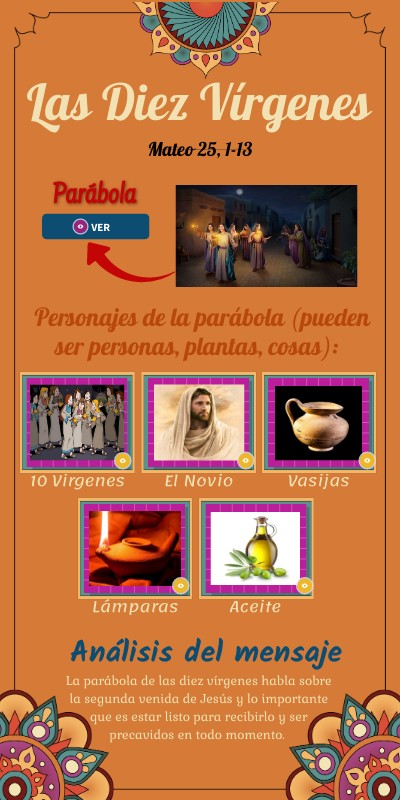 La parábola de las diez vírgenes habla sobre la segunda venida de Jesús y lo importante que es estar listo para recibirlo y ser precavidos en todo momento.