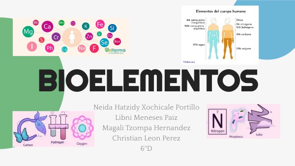 En este catalogo se hablo sobre los bioelementos; el cual tiene como intensión dar a conocer acerca de los bioelementos, en este se abarcan temas como la función de las mismas, la clasificación, los alimentos que tienen estos elementos y las partes del cuerpo en las que se encuentran estos elementos. Se describen los temas mencionados anteriormente, además de que se emplean imagenes que representan lo dicho en cada página.