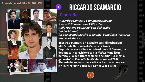 Riccardo Scamarcio è un attore italiano,è nato il 13 novembre 1979 a Trani nella regione Puglia nel sud dell' ItaliaLui ha 42 anni, ha una compagna che si chiama Benedetta Porcaroli, anche lei attrice.