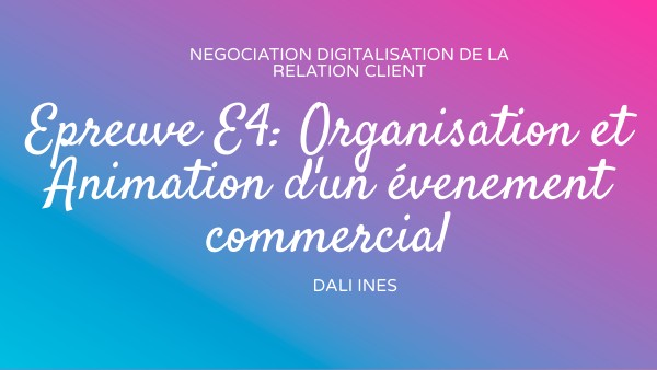 Epreuve E4: Organisation et Animation d'un évenement commercial