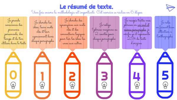 Méthode pas à pas pour rédiger le résumé d'un texte.