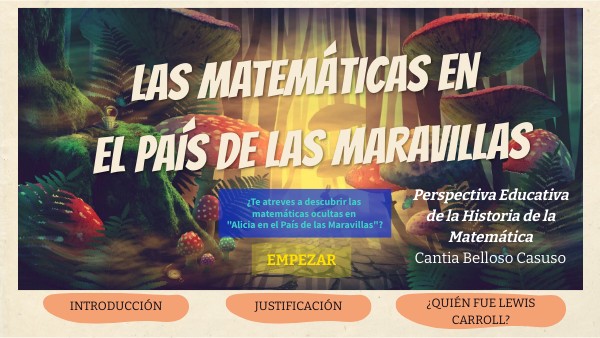 Los conceptos matemáticos surgieron en un momento histórico y contexto determinado: ¿por qué fueron surgiendo las matemáticas? ¿por qué nos pueden resultar útiles en nuestro día a día?Las matemáticas se van construyendo, enriqueciendo y en algunas ocasiones aparecen explícita o implícitamente en diversas obras literarias, como en "Alicia en el País de las Maravillas'' de Charles Lutwidge Dodgson (Lewis Carroll).