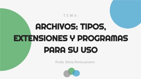 La información de un ordenador está almacenada en lo que se llaman archivos. Normalmente los archivos están formados por un nombre, un punto y una extensión (p.e. PROGRAMA.EXE). El nombre nos sirve para diferenciar unos archivos de otros y la extensión para atribuirle unas propiedades concretas. Estas propiedades asociadas o "tipo de archivo" vienen dadas por las letras que conforman la extensión. Normalmente su máximo son tres letras aunque existen algunas excepciones (.jpeg, .html, .java, etc.). Cada uno de estos pequeños grupos de caracteres está asociado a un tipo de archivo.Veamos las extensiones de nuestros archivos.