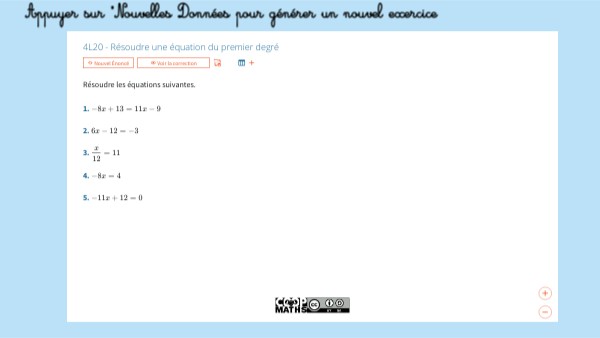 Appuyer sur "Nouvelles Données pour générer un nouvel exercice