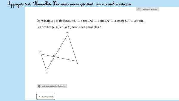 Appuyer sur "Nouvelles Données pour générer un nouvel exercice