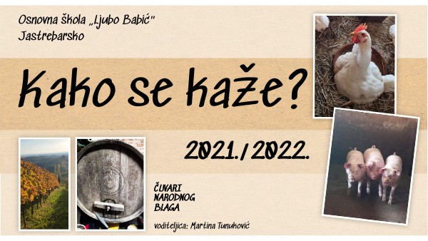 Skupina učenika, koja već treću godinu sudjeluje u projektima sa svrhom očuvanja narodne baštine, djeluje pod imenom Čuvari narodnog blaga. Njihova voditeljica je Martina Tunuković. Ciljevi projekta KAKO SE KAŽE... ?