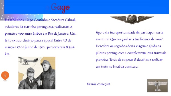 Agora é a tua oportunidade de participar nesta aventura! Queres ganhar a tua licença de voo? Descobre os segredos desta viagem e ajuda os pilotos portugueses a completarem esta travessia pioneira. Terás de superar 8 desafios e realizar um teste no final da aventura.