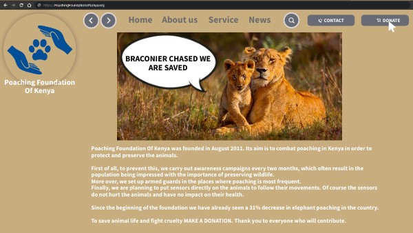 Poaching Foundation Of Kenya was founded in August 2011. Its aim is to combat poaching in Kenya in order to protect and preserve the animals. First of all, to prevent this, we carry out awareness campaigns every two months, which often result in the population being impressed with the importance of preserving wildlife. More over, we set up armed guards in the places where poaching is most frequent. Finally, we are planning to put sensors directly on the animals to follow their movements. Of course the sensors do not hurt the animals and have no impact on their health. Since the beginning of the foundation we have already seen a 31% decrease in elephant poaching in the country. To save animal life and fight cruelty MAKE A DONATION. Thank you to everyone who will contribute.
