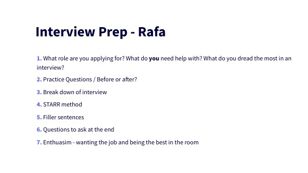 1. What role are you applying for? What do you need help with? What do you dread the most in an interview?