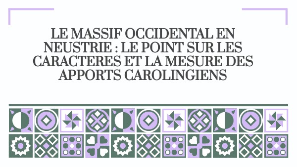 LE MASSIF OCCIDENTAL EN NEUSTRIE : LE POINT SUR LESCARACTERES ET LA MESURE DES APPORTS CAROLINGIENS