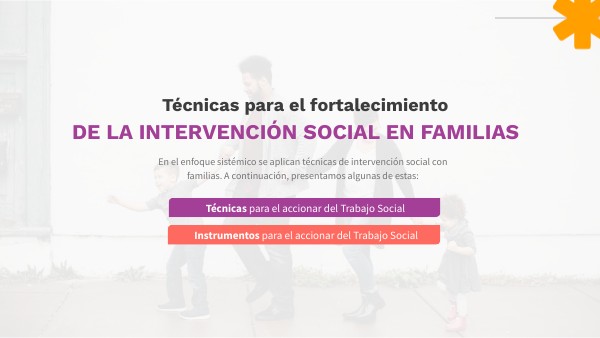 En el enfoque sistémico se aplican técnicas de intervención social con familias. A continuación, presentamos algunas de estas:
