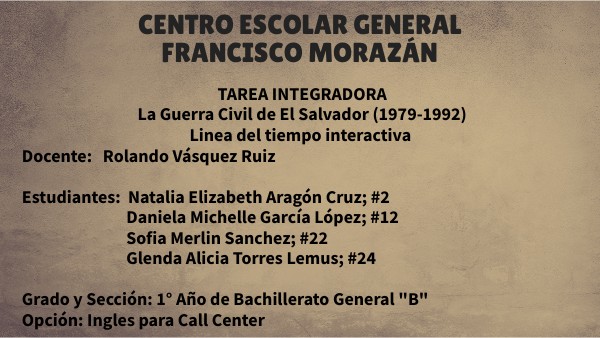 Daniela Michelle García López; #12 Merlin Sofia Sánchez; #22 Glenda Alicia Torres Lemus; #24LA GUERRA CIVIL DE EL SALVADOR (1979-1992)