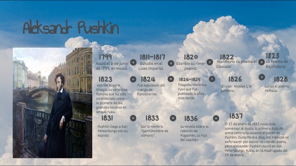 escribe Eugene Onegin, su obra más famosa que ha sido considerada como la primera de las grandes novelas en lengua rusa..