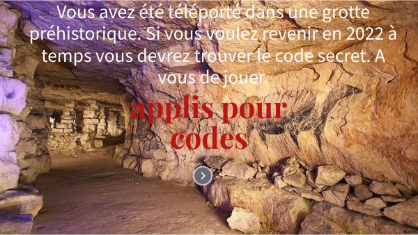 Vous avez été téléporté dans une grotte préhistorique. Si vous voulez revenir en 2022 à temps vous devrez trouver le code secret. A vous de jouer.