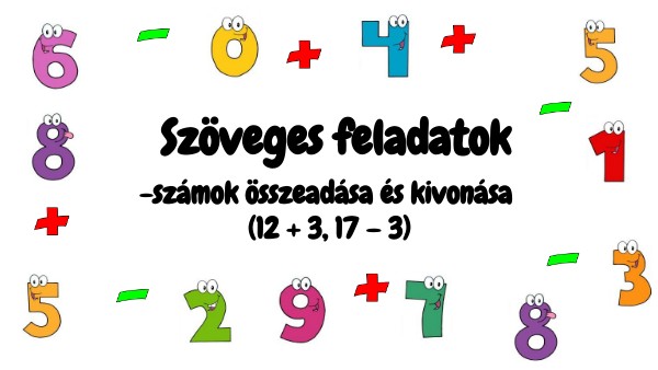 Szöveges feladatok -összeadás és kivonás 20 ig (12+3, 17-3)