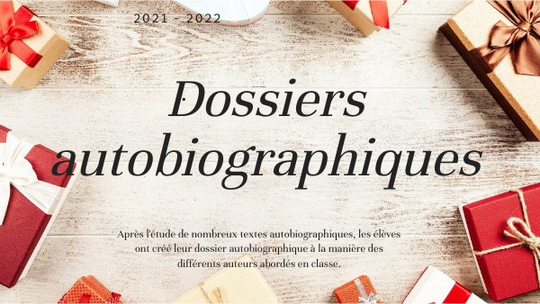 Après l'étude de nombreux textes autobiographiques, les élèves ont créé leur dossier autobiographique à la manière des différents auteurs abordés en classe.