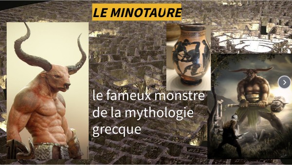description: dans la mythologie grec le minotaure est mi-homme mi-taureau, il a le corps d'un homme et la tête d'un taureau.