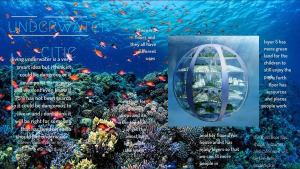 living underwater is a very smart idea but i think irt could be dangrous or it could polut our oceans and we dont even know if 75% has not been search so it could be dangerous to live in and i dont think it will be right for someone that has lived on earth should live underwater