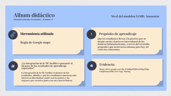 La integración de la TIC facilitó el alcance de los resultados, debido a que los estudiantes lo hacen en pequeños subgrupos donde todos tienen que ser partícipes y estar de acuerdo de lo que van a agregar para un trabajo que están haciendo con otros subgrupos, además, la busqueda de imágenes y la colocación de las mismas se facilitó y evitó el uso de los recursos físicos que normalmente se usan para un mural