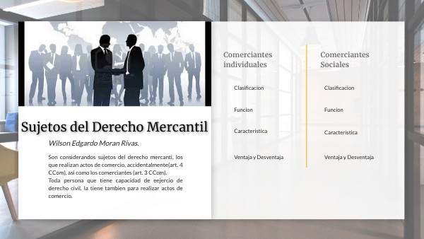 Son considerandos sujetos del derecho mercanti, los que realizan actos de comercio, accidentalmente(art. 4 CCom), asi como los comerciantes (art. 3 CCom).Toda persona que tiene capacidad de eejercio de derecho civil, la tiene tambien para realizar actos de comercio.