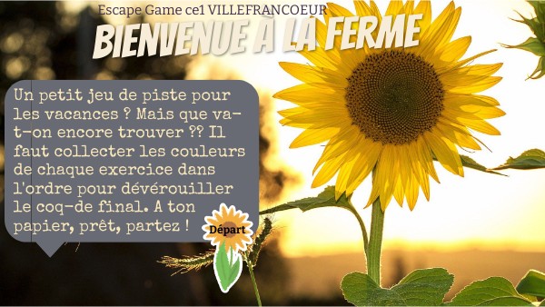 Un petit jeu de piste pour les vacances ? Mais que va-t-on encore trouver ?? Il faut collecter les couleurs de chaque exercice dans l'ordre pour dévérouiller le coq-de final. A ton papier, prêt, partez !