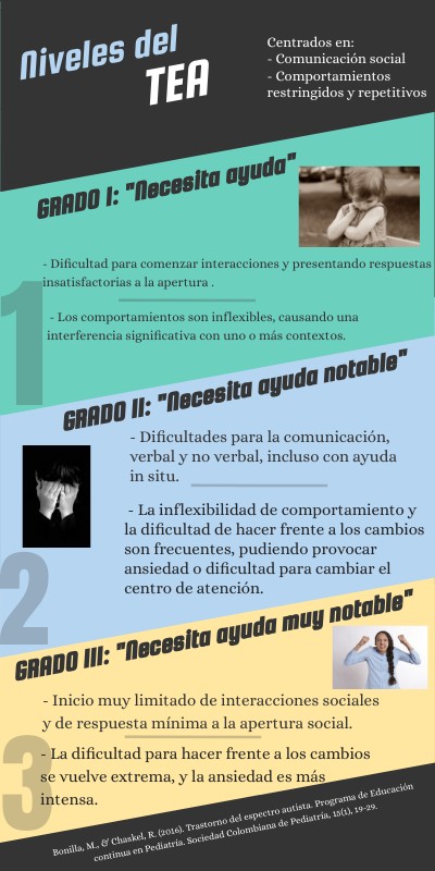 Bonilla, M., & Chaskel, R. (2016). Trastorno del espectro autista. Programa de Educación continua en Pediatría. Sociedad Colombiana de Pediatría, 15(1), 19-29.
