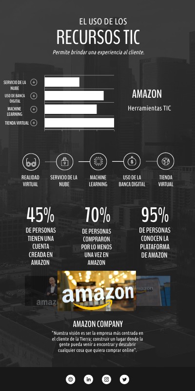 "Nuestra visión es ser la empresa más centrada en el cliente de la Tierra; construir un lugar donde la gente pueda venir a encontrar y descubrir cualquier cosa que quiera comprar online".