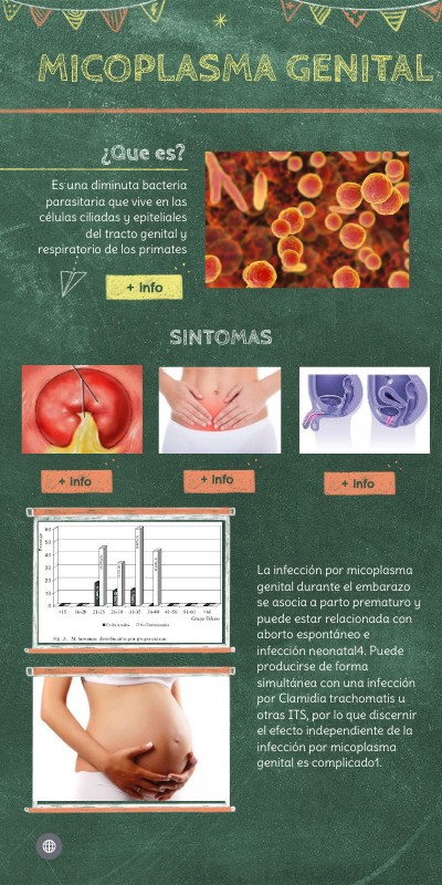 La infección por micoplasma genital durante el embarazo se asocia a parto prematuro y puede estar relacionada con aborto espontáneo e infección neonatal4. Puede producirse de forma simultánea con una infección por Clamidia trachomatis u otras ITS, por lo que discernir el efecto independiente de la infección por micoplasma genital es complicado1.