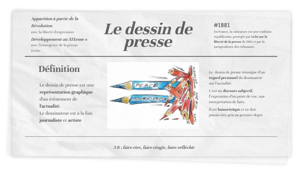Le dessin de presse est une représentation graphique d'un évènement de l'actualité.Le dessinateur est à la fois journaliste et artiste