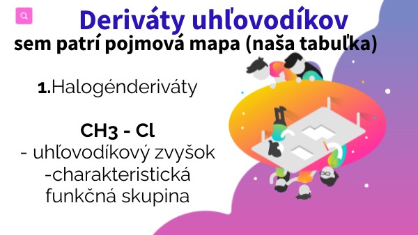 1.Halogénderiváty CH3 - Cl - uhľovodíkový zvyšok -charakteristická funkčná skupina