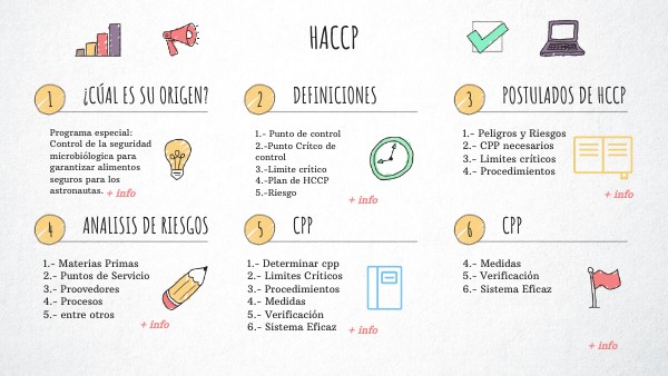 1.- Punto de control2.-Punto Crítco de control 3.-Limite crítico 4.-Plan de HCCP 5.-Riesgo