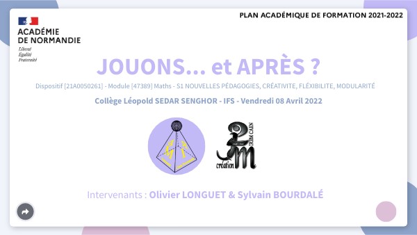 Module [47389] MATHS - JOUONS... et APRÈS ? - Ifs - Vendredi 8 Avril 2022