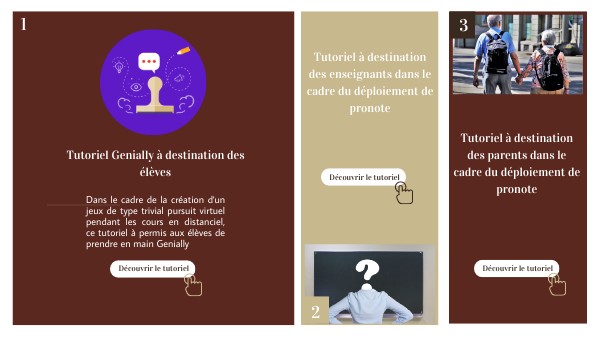 Dans le cadre de la création d'un jeux de type trivial pursuit virtuel pendant les cours en distanciel, ce tutoriel à permis aux élèves de prendre en main Genially